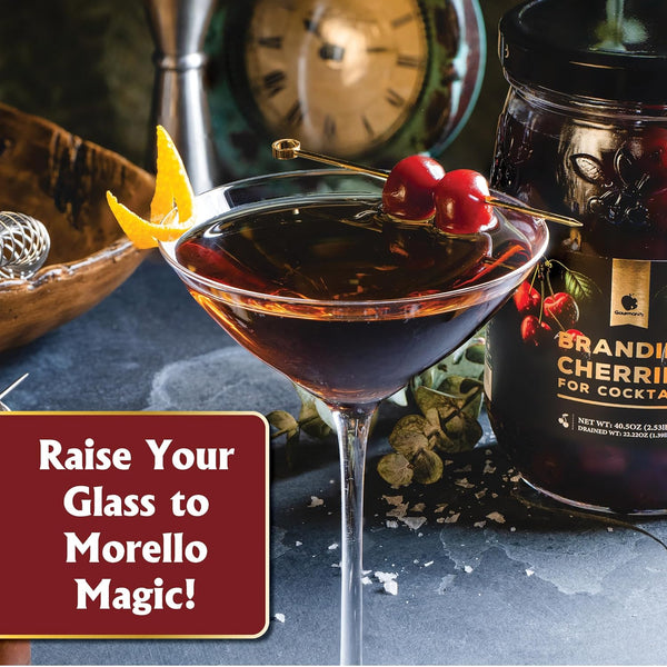 - COCKTAIL-READY CHERRIES: Transform your cocktails, cakes, and desserts from good to unforgettable! Our brandied cherries for cocktail are steeped in Kirsch, creating a delightful balance of sweet and tangy that brings out the best in any recipe.