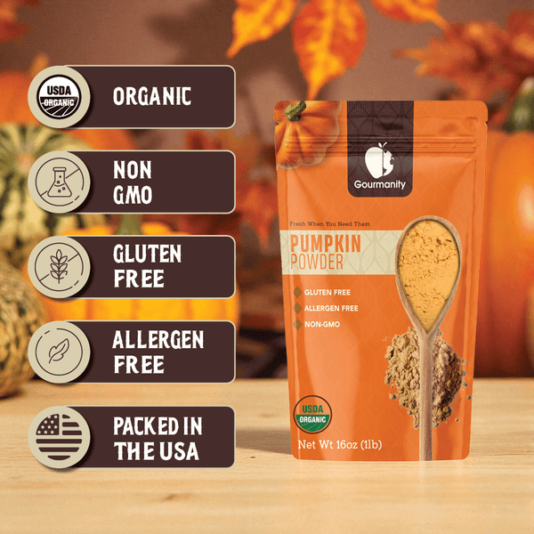 PUMPKIN POWDER BULK VALUE: Buy 1 lb of Gourmanity’s organic pumpkin powder for delicious flavor and natural color in cooking and baking.